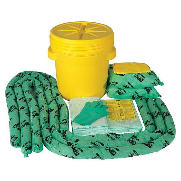 Spill Kit, 16 gal Volume Absorbed per Kit, 20 gal Capacity, Drum, Yellow