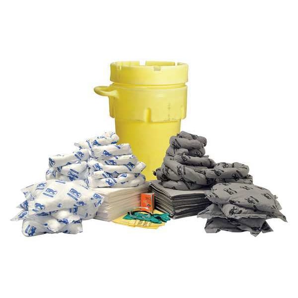 Spill Kit, 75 gal Volume Absorbed per Kit, 95 gal Capacity, Drum, Yellow