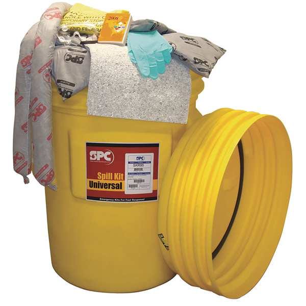 Spill Kit, Fluids Absorbed Universal, Specialized Applications Highly versatile, Grey Absorbents Pick up Water-Based, Petroleum-Based and Non-Aggressive, Chemical Fluids, Volume Absorbed Per Kit 93 gal, Container Type Drum, 95 gal Container Capacity, 95 gal. Container Size, Yellow, Filled, Sorbents Included (110) Universal Pads (15 in W x 19 in L), (12) Universal Socks (3 in Dia. x 4 ft L), (8) Pillows (18 in W x 18 in L ), (8) Universal Socks (3 in Dia. x 12 ft L)