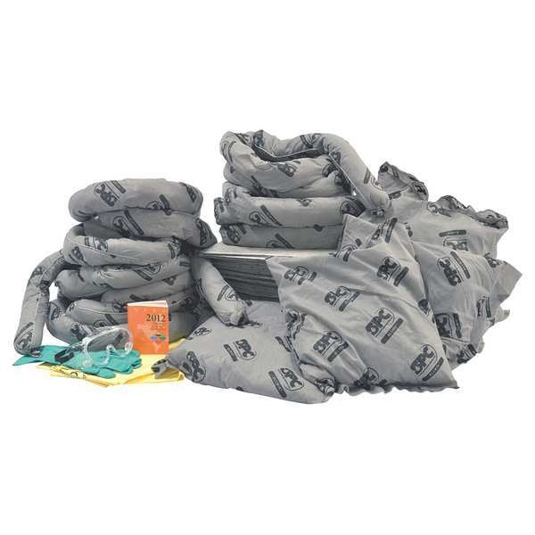 Spill Kit Refill, Fluids Absorbed Universal, Volume Absorbed Per Kit 28 gal, Container Type Bag, Filled, Sorbents Included (100) Pads (15 in W x 19 in L), (5) Socks (3 in Dia. x 4 ft L), (8) Pillows, PPE Included (1) Pair Goggles, (1) Pair Nitrile Gloves, Additional Components Included (5) Disposal Bags, SPC, Includes Mounting Fasteners No, Land Fill Disposable No