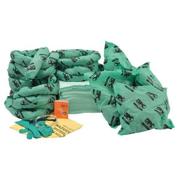 Spill Kit Refill, Fluids Absorbed Chemicals, Volume Absorbed Per Kit 32 gal, Container Type Bag, Filled, Sorbents Included (100) Chemical Pads (15 in W x 19 in L), (5) Chemical Socks (3 in Dia. x 4 ft L), (8) Chemical Pillows, PPE Included (1) Pair Goggles, (1) Pair Nitrile Gloves, Additional Components Included (5) Disposal Bags, SPC, Includes Mounting Fasteners No, Land Fill Disposable No