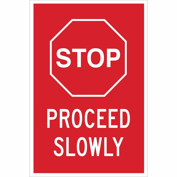 Stop, Stop Proceed Slowly, 18 in x 12 in, Rectangle, Plastic, 124429