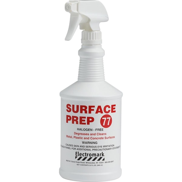 This product is specially prepared and formulated to degrease and clean metal, plastic, polycarbonate and concrete without any adverse effects on these surfaces. Use Surface Prep 77 to prepare surfaces for pressure sensitive markers. Clean the application surface with Surface Prep and a Scotch-Brite pad. Non-flammable and halogen-free. Nuclear certified. Complies with 10CFR50 Standard.