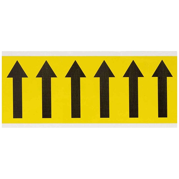 Symbol Label, Adhesive Type Removable and Repositionable Adhesive, Application General Identification, Wire and Cable Labeling, APWA Compliant Color No, Background Color Yellow, Character Color Black, Character Color Gradient Solid Color, Character Height 3 in, Character Outline Color Not Applicable, Character Type Symbols, Characters Included Arrow, Die Cut Yes, Embossed No, Font Gothic, Includes (1) Package, Indoor/Outdoor Usage Indoor Only, Letter Casing Uppercase, Material Vinyl