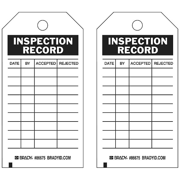 Tag, Inspection, Paper, 5 3/4 in H x 3 in W, Black on White, Rectangle, 100 PK