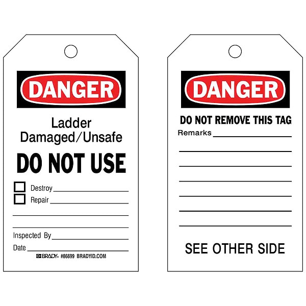 Tag, Compatible Tag Holder Mfr Part Number Not Applicable, Compatible Tag Insert Mfr Part Number Not Applicable, Fastener Attachment Length 12 in, Fastener Type String, Header Wording (Reverse Side) Danger, Header Wording Danger, Height 7 in, Indoor/Outdoor Usage Indoor, Lamination Type Not Laminated, Language English, Mounting Hole Reinforcement Type No Grommet, Mounting Hole Size 3/8 in, Number of Tags 100