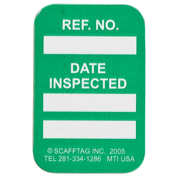 Tag, Inspection, Polyester, 1 3/4 in H x 1 1/4 in W, White on Green, Rectangle, 100 PK
