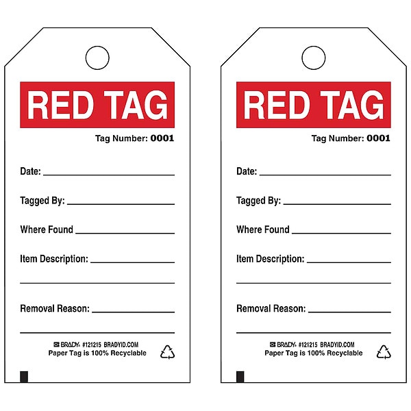 Tag, Compatible Tag Holder Mfr Part Number Not Applicable, Compatible Tag Insert Mfr Part Number Not Applicable, Fastener Attachment Length 12 in, Fastener Type Wire, Header Wording (Reverse Side) Red Tag, Header Wording Red Tag, Height 5 3/4 in, Indoor/Outdoor Usage Indoor, Lamination Type Not Laminated, Language English, Mounting Hole Reinforcement Type Brass, Mounting Hole Size 3/8 in, Number of Tags 100, Preprinted Images (Reverse Side) Not Applicable, Preprinted Images Not Applicable
