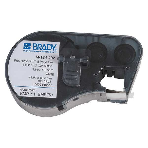 Precut Label Roll Cartridge, Compatible Grainger Part Number 30DA39, Compatible Mfr Part Number R6400, Label Color White, Label Finish Matte, Label Height 1/2 in, Label Material Polyester, Label Width 1/2 in, Material Properties Cryogenic, Printer Series Compatibility BMP51, BMP53, Ribbon Color Black, Vial/Tube Size 1.5 to 2.0 ml, For Print Method Thermal Transfer, Material Series B-492, Maximum Service Temperature 230 Degrees F, Minimum Service Temperature -320 Degrees F