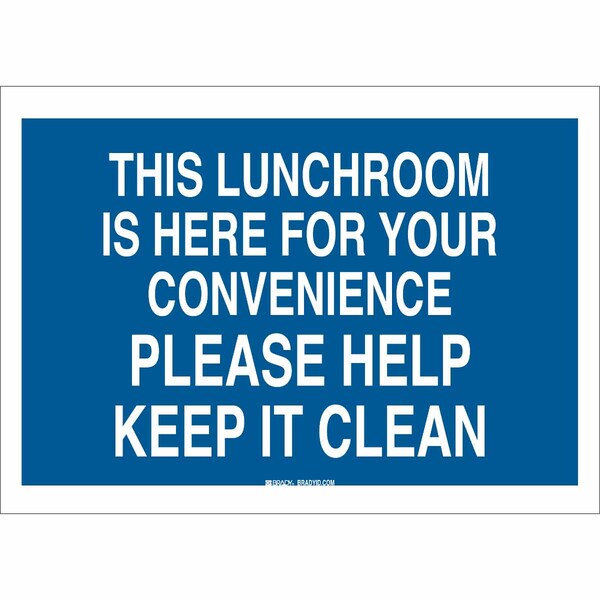 Housekeeping Sign, Sign Subject Matter Facility, Height 7 In., Width 10 In., Sign Material Polyester, Sign Mounting Style Adhesive Surface, Header No Header, Legend This Lunchroom Is Here For Your Convenience Please, Printed Language English, Sign Shape Rectangle