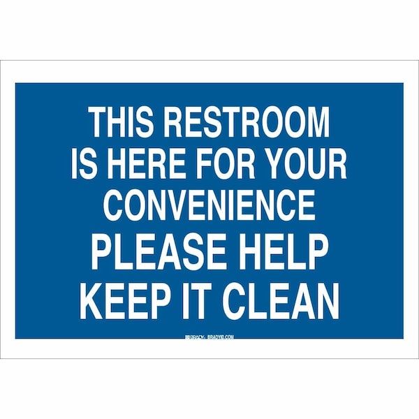 Safety Sign, Sign Subject Matter Restrooms, Height 7 In., Width 10 In., Sign Material Aluminum, Sign Mounting Style With Mounting Holes, Header No Header, Legend This Restroom Is Here For Your Convenience Please Help Keep It Clean, Printed Language English, Sign Shape Rectangle