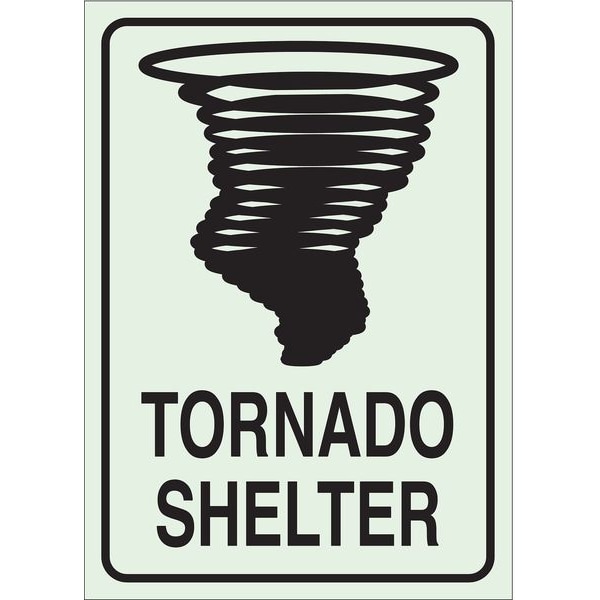 Emergency Sign, Sign Subject Matter Evacuation, Assembly or Shelter, Height 14 in, Width 10 in, Sign Material Plastic, Sign Mounting Style With Mounting Holes, Header No Header, Legend Tornado Shelter, Printed Language English, Sign Shape Rectangle