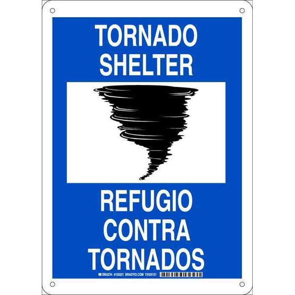 Emergency Sign, Sign Subject Matter Evacuation, Assembly or Shelter, Height 14 in, Width 10 in, Sign Material Plastic, Sign Mounting Style With Mounting Holes, Header No Header, Legend Tornado Shelter/Refugio Contra Tornados, Printed Language English, Spanish, Sign Shape Rectangle