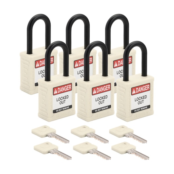 Velocity Lockout Padlocks Nylon 1.5in Clearance KA Plastic Shackle White 6PK