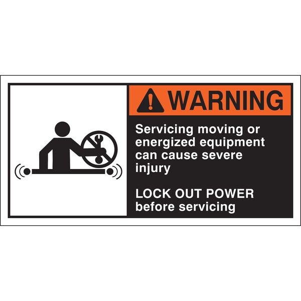 Sign, Horizontal Rectangle, Number of Printed Sides 1, English, Sign Legend SERVICING MOVING OR ENERGIZED EQUIPMENT CAN CAUSE, Sign Legend Style Symbol and Text, Package Quantity 5