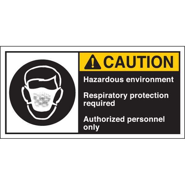 Label, Horizontal Rectangle, Number of Printed Sides 1, English, Sign Legend HAZARDOUS ENVIRONMENT RESPIRATORY PROTECTION REQUIRED AUTHORIZED PERSONNEL ONLY, Sign Legend Style Symbol and Text, Package Quantity 5