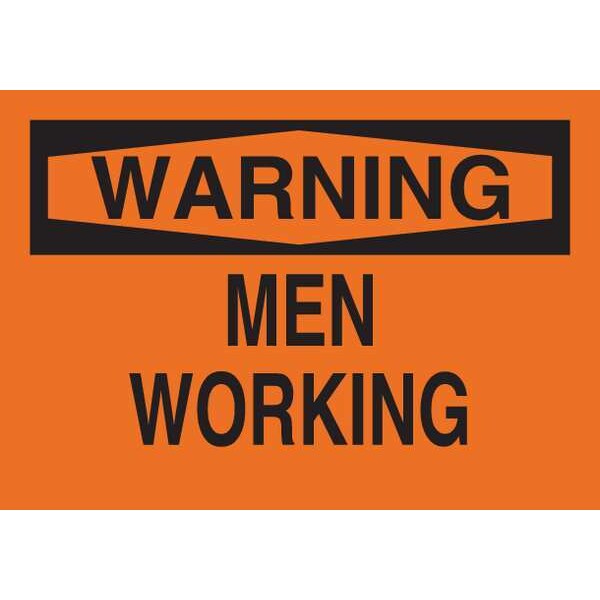 Warning Sign, Sign Subject Matter Person Working, Height 7 In., Width 10 In., Sign Material Polyester, Sign Mounting Style Adhesive Surface, Header Warning, Legend Men Working, Printed Language English, Sign Shape Rectangle