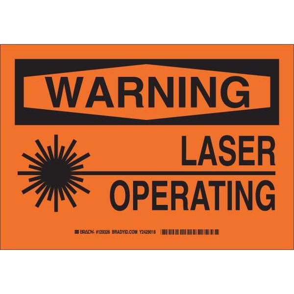 Warning Sign, Sign Subject Matter Laser Hazard, Height 10 in, Width 14 in, Sign Material Plastic, Sign Mounting Style With Mounting Holes, Header Warning, Legend Laser Operating, Printed Language English, Sign Shape Rectangle