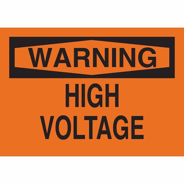 Warning Sign, Sign Subject Matter Electrical Hazard, Height 10 in, Width 14 in, Sign Material Plastic, Sign Mounting Style With Mounting Holes, Header Warning, Legend High Voltage, Printed Language English, Sign Shape Rectangle