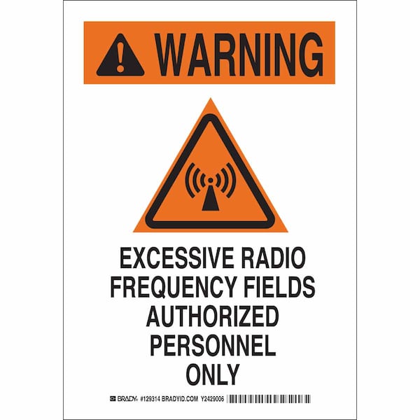 Warning Sign, Sign Subject Matter Authorized Personnel and Restricted Access, Height 14 in, Width 10 in, Sign Material Polyester, Sign Mounting Style Adhesive Surface, Header Warning, Legend Excessive Radio Frequency Fields Authorized Personnel Only, Printed Language English, Sign Shape Rectangle