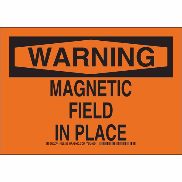 Warning Sign, Sign Subject Matter Magnetic Hazard, Height 7 in, Width 10 in, Sign Material Aluminum, Sign Mounting Style With Mounting Holes, Header Warning, Legend Magnetic Field In Place, Printed Language English, Sign Shape Rectangle