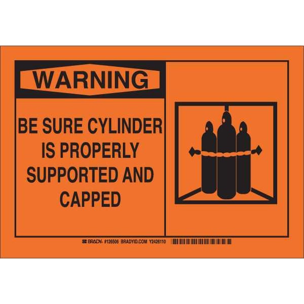 Warning Sign, Sign Subject Matter Chemical, Gas or Hazardous Materials, Height 7 in, Width 10 in, Sign Material Polyester, Sign Mounting Style Adhesive Surface, Header Warning, Legend Be Sure Cylinder Is Properly Supported And Capped, Printed Language English, Sign Shape Rectangle