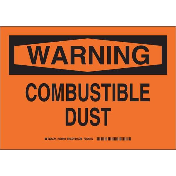Warning Sign, Sign Subject Matter Chemical, Gas or Hazardous Materials, Height 7 in, Width 10 in, Sign Material Polyester, Sign Mounting Style Adhesive Surface, Header Warning, Legend Combustible Dust, Printed Language English, Sign Shape Rectangle