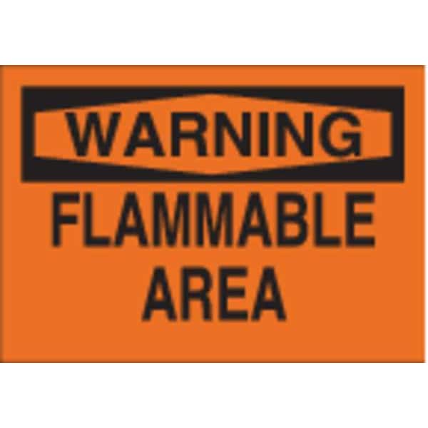 Warning Sign, Sign Subject Matter Chemical, Gas or Hazardous Materials, Height 7 in, Width 10 in, Sign Material Polyester, Sign Mounting Style Adhesive Surface, Header Warning, Legend Flammable Area, Printed Language English, Sign Shape Rectangle