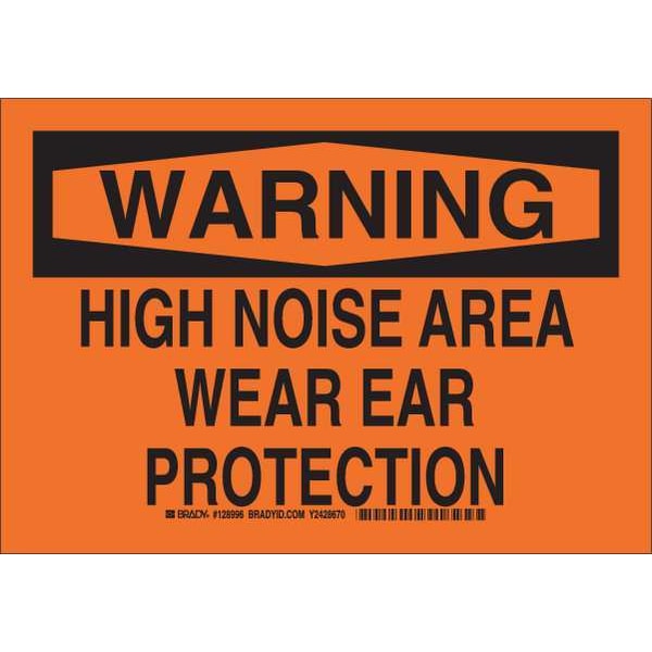Warning Sign, Sign Subject Matter Personal Protection, Height 7 in, Width 10 in, Sign Material Polyester, Sign Mounting Style Adhesive Surface, Header Warning, Legend High Noise Area Wear Ear Protection, Printed Language English, Sign Shape Rectangle