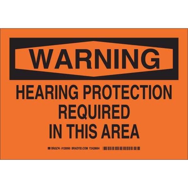 Warning Sign, Sign Subject Matter Personal Protection, Height 7 in, Width 10 in, Sign Material Plastic, Sign Mounting Style With Mounting Holes, Header Warning, Legend Hearing Protection Required In This Area, Printed Language English, Sign Shape Rectangle