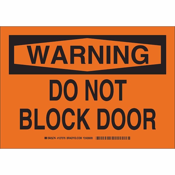 Warning Sign, Polyester, 14" W, 10" H, Do Not Block Door, Orange
