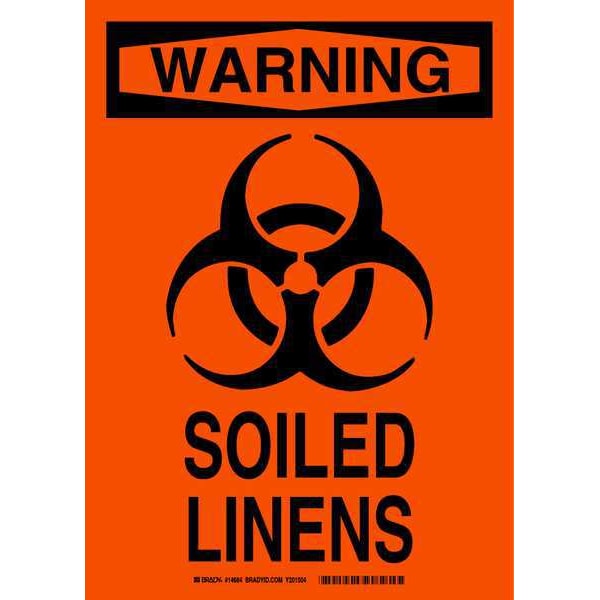 Safety Sign, Sign Subject Matter Medical and Hospital, Height 14 In., Width 10 In., Sign Material Plastic, Sign Mounting Style With Mounting Holes, Header Warning, Legend Soiled Linens, Printed Language English, Sign Shape Rectangle