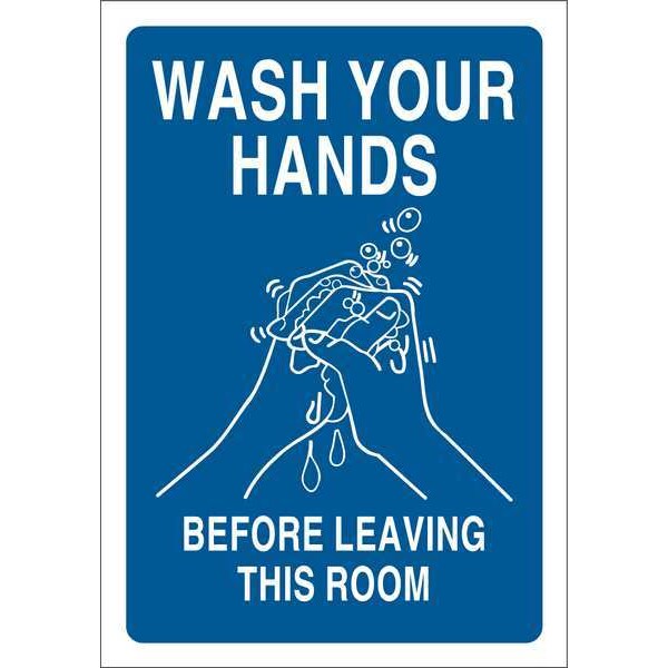 Facility Sign, Sign Subject Matter Wash Hands, Height 10 In., Width 7 In., Sign Material Polyester, Sign Mounting Style Adhesive Surface, Header No Header, Legend Wash Your Hands Before Leaving This Room, Printed Language English, Sign Shape Rectangle