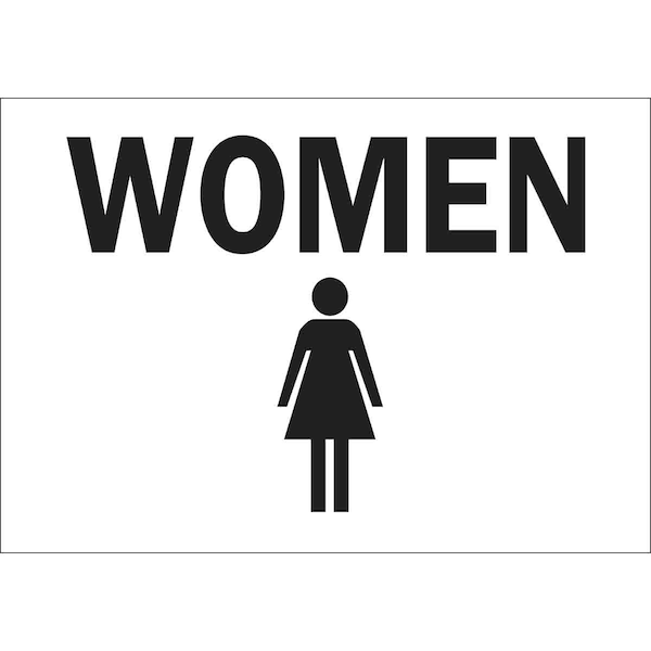 Restroom Sign, Sign Subject Matter Restrooms, Height 10 In., Width 14 In., Sign Material Plastic, Sign Mounting Style With Mounting Holes, Header No Header, Legend Women, Printed Language English, Sign Shape Rectangle