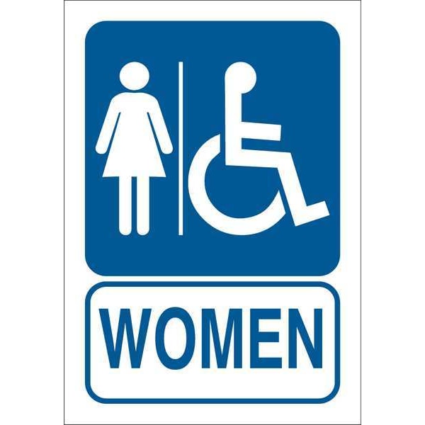 Facility Sign, Sign Subject Matter Restrooms, Height 10 In., Width 7 In., Sign Material Plastic, Sign Mounting Style With Mounting Holes, Header No Header, Legend Women, Printed Language English, Sign Shape Rectangle
