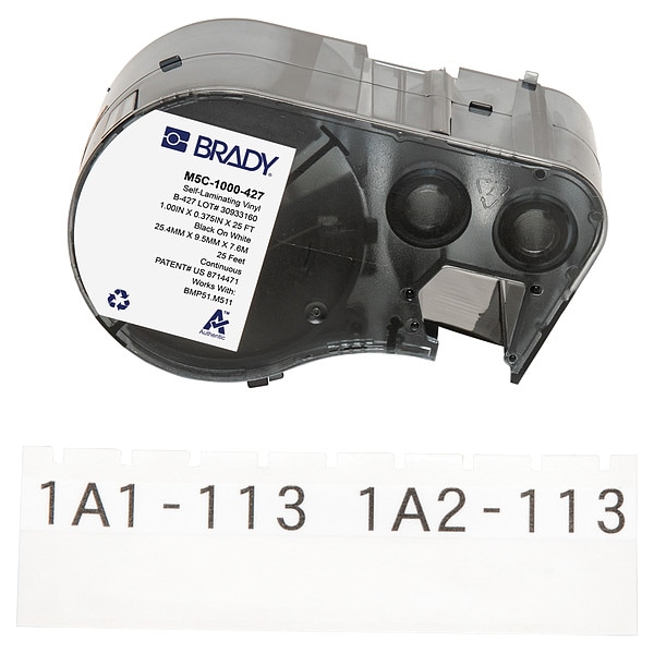 Wraparound Label, Adhesive Material Acrylic, Adhesive Properties Permanent Adhesive, Adhesive Type Permanent, Material Properties Flame Retardant, Label Material Vinyl, Label Color White, Label Finish Matte, Label Height Not Applicable, Label Width 1 in, Compatible Mfr Part Number BMP-51, BMP-53, Compatible Grainger Part Number 21U174, 21U176, 21U177, 21U178, 21U179, 21U180, 810HX3, 810HX4, Recommended Ribbon R4300, Printer Series Compatibility BMP51, BMP53, M510, M511