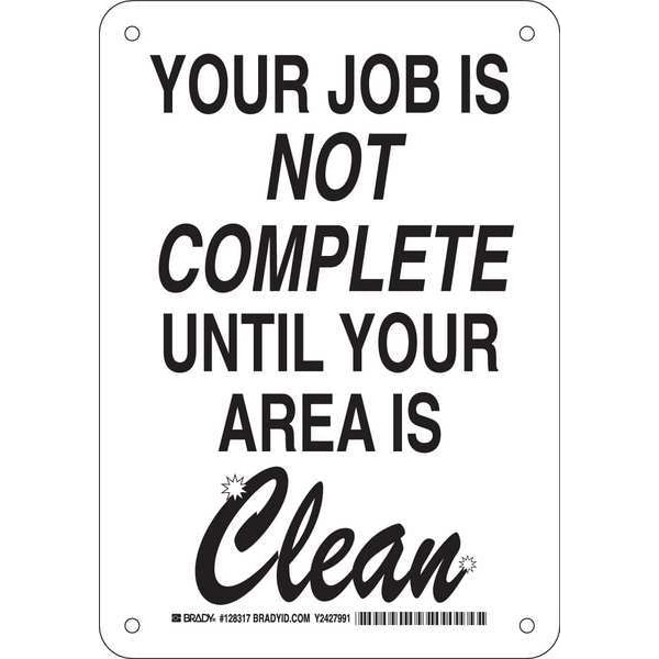 Facility Sign, Sign Subject Matter Cleaning and Maintenance, Height 10 In., Width 7 In., Sign Material Plastic, Sign Mounting Style With Mounting Holes, Header No Header, Legend Your Job Is Not Complete Until Your Area Is Clean, Printed Language English, Sign Shape Rectangle