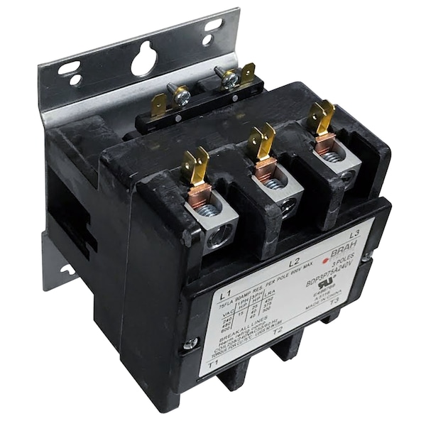 3P, 75A, 600V, definite purpose contactor, complete with 208/240VAC control coil, UL recognized, by BRAH Electric