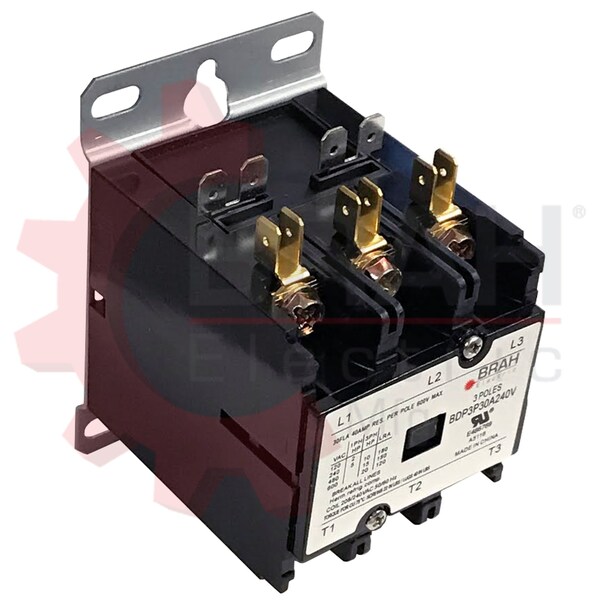 3P, 30A, 600V, definite purpose contactor, complete with 208/240VAC control coil, UL recognized, by BRAH Electric