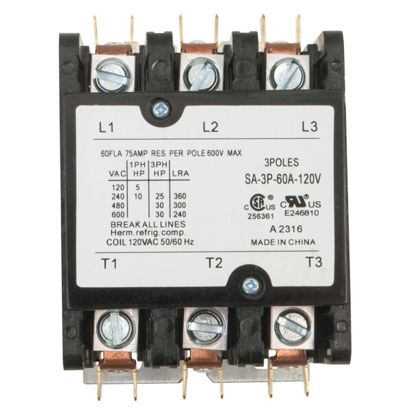 3P, 60A, 600V, definite purpose contactor, complete with 480VAC control coil, UL recognized, by BRAH Electric