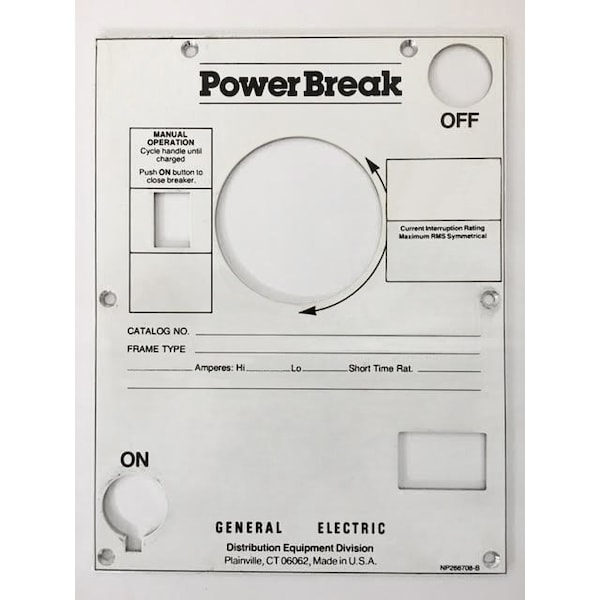 Nameplate For Newer Power Break I Large Frame Inverted Configuration, 2500A-4000A, Manually Operated