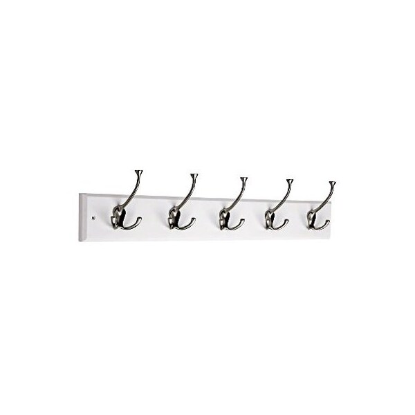 27, White Satin Nickel TriHook Rail, 5 TriHooks, Great For Storage Of Backpacks, Robes, Towels, Coats More, Holds Up To 35 LB