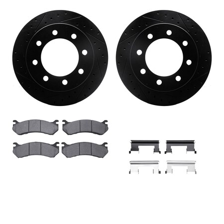 DFC Brake Rotor Drilled & Slotted - Black- w/Ultimate Duty Brake Pad & HW Kit