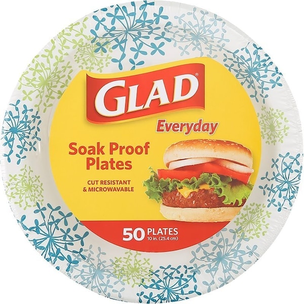 Glad Everyday Plate, 10-1/4 in, Round, Paper, Blue Hydrangea