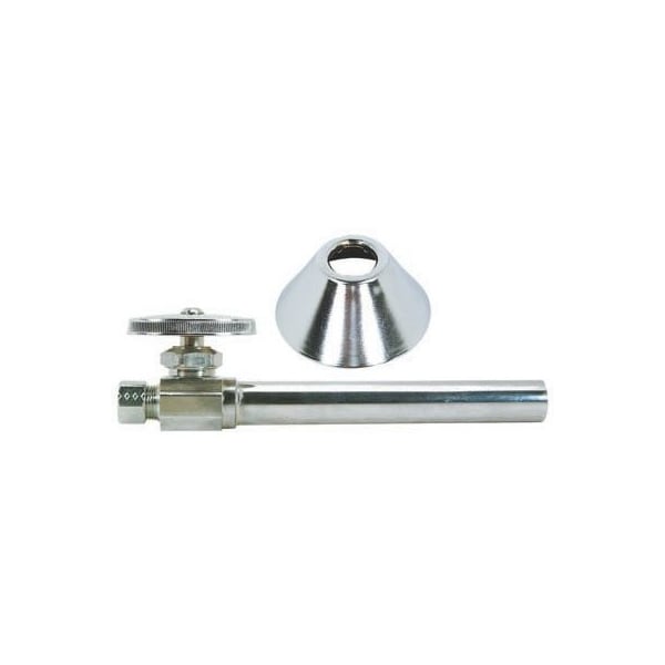 58 Sweat 12 Nominal Sweat x 38 OD Compression, Chrome, Straight Valve, With 5 Extension Tube, Includes Bell Flange, Lead Free Compliant Item, Boxed