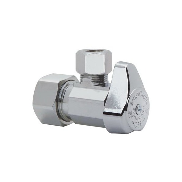 58 OD Compression 12 Nominal Compression x 38 OD Compression, Chrome, Angle Valve, 14 Turn, Lead Free Compliant Item, Boxed