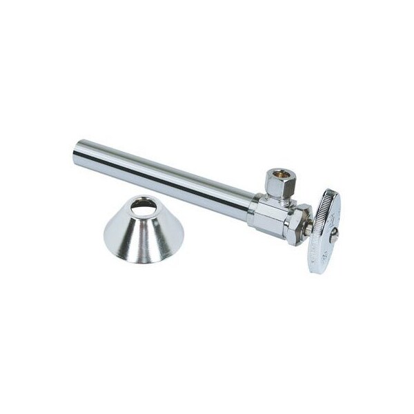 58 Sweat 12 Nominal Sweat x 38 OD Compression, Chrome, Angle Valve, With 5 Extension Tube, Includes Bell Flange, Lead Free Compliant Item, Boxed