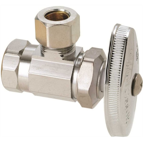 BrassCraft 3/8 In. FIP Inlet x 3/8 In. OD Compression Outlet Multi-Turn Angle Valve controls water flow to household plumbing fixtures faucets, toilets, dishwashers, icemakers, washing machines, etc. The angle valve is most often used where the water pipe enters the room from the wall. With a few turns of the valve handle, you are able to stop or start the flow of water leading to the plumbing fixture, allowing for maintenance and repair without shutting off the water to the entire home.Compatible with Iron PipeMachined, one-piece body construction for strength, durability and long-lasting performanceEasy-to-remove handle protects against accidental operation during rough-insMulti-turn operation means water flow control with only a few turns of the handleOval-knurled handle provides a secure grip for on/off operationChrome-plated brassTemperature rating: 40 to 140 FPressure rating: 125 psi maximumNo-Lead CertifiedIAPMO and CSA listed to ASME A112.18.1 / CSA B125.1Designed, Machined and Assembled in the USADesigned, Machined and Assembled in the USA