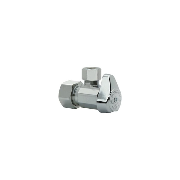 5/8in OD Compression 1/2in Nominal Compression x 1/2in OD Compression, Chrome, Angle Valve, 1/4 Turn, Lead Free Compliant Item, Carded.