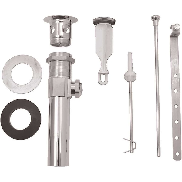 Complete lavatory pop-up drain assembly for Delta faucet in chrome. Genuine OEM Delta faucet replacement part, RP5651. Tailpiece is 20-Gauge, 8 in. L and 1-1/4 in. O.D. top. Kit includes pop-up drain stopper assembly, lift rod with clip and tailpiece. Chrome plated brass. Easy-to-follow installation instructions are included.Lavatory pop-up assembly for Delta faucetsPop-up drain stopper assembly size: 8 in. tailpiece x 1-1/4 in. top O.D.Kit includes pop-up drain stopper assembly, lift rod with clip, and tailpieceFor DIYers and prosChrome-platedEasy to use. This product can expose you to one or more chemicals, including Lead, which are known to the State of California to cause cancer, birth defects or other reproductive harm. For more information go to www.P65Warnings.ca.gov